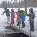 Kuigi õues oli külm ilm, võtsime ette ka lühikese jalutuskäigu Arbi järve äärde ja arutasime milliseid ohte nägime teel. Lapsed olid väga teadlikud, et jääle ei tohi minna. Kõik lapsed olid küll soojalt riides, kuid siiski oli lastel väga külm ning arutasime selle üle, et kui kokku panna tuul ja külmakraadid, siis võib tajutavad külmakraadid olla madalamad kui kraadiklaasil nähtavad numbrid.